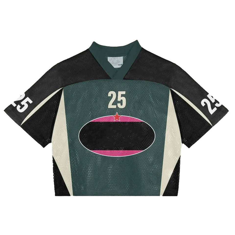 เสื้อยืดแฟชั่นสตรีทโอเวอร์ไซส์สั่งทำขายส่งสำหรับกีฬา ชุดเสื้อเจอร์ซีย์ฟุตบอลทรงบ็อกซี่ผ้าตาข่ายแบบยูนิเซ็กซ์ ไซส์พลัส ชุดกีฬาอเมริกันฟุตบอล 100%