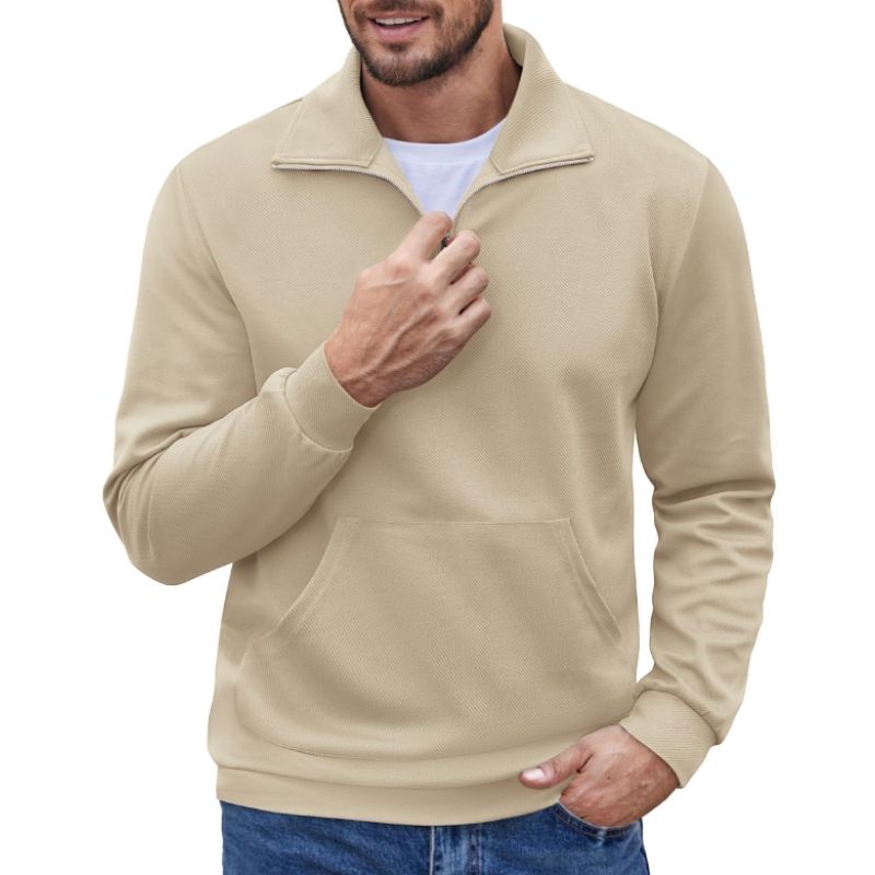 เสื้อสเวตเตอร์ซิปครึ่งแขนยาวแบบรูดซิปสำหรับผู้ชายเสื้อสเวตเตอร์ครึ่งคอเต่ามีกระเป๋า