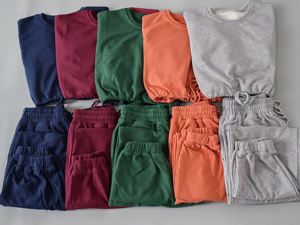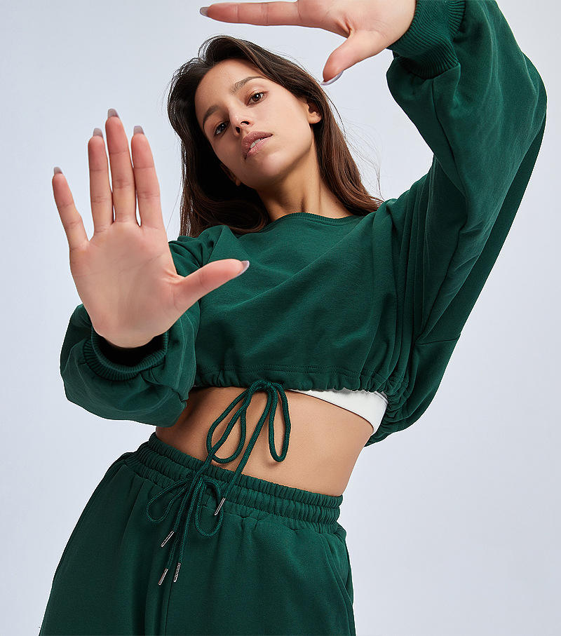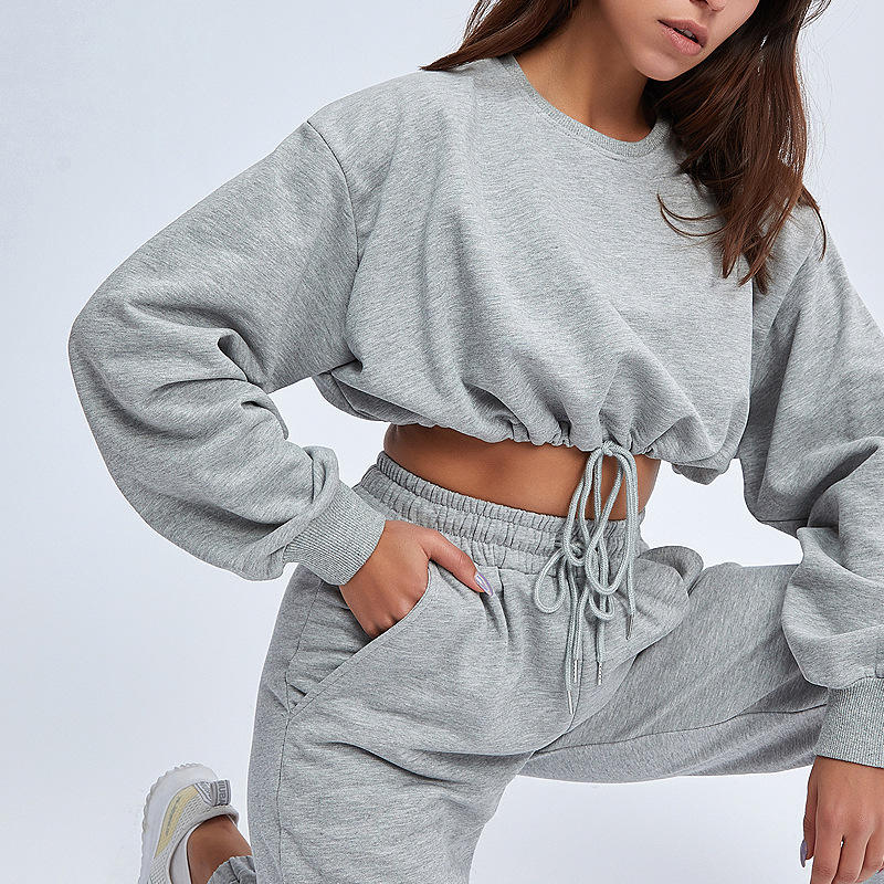 Sportswear 2 Piece Sets Women High Waist Long Sleeve Crop Tops Hoodies Drawstring Pullover Hoodies and Sweat Pants Suit Sets