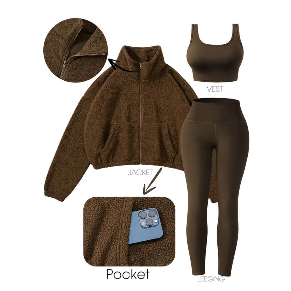 ชุดออกกำลังกาย 3 ชิ้น ชุดโยคะสำหรับผู้หญิง ขายส่ง แบรนด์ส่วนตัว สีพื้น ทุกขนาด ชุดโยคะผู้หญิง