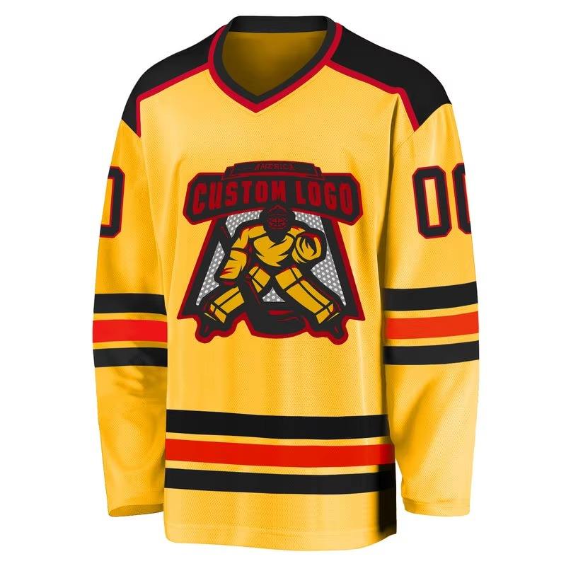 เสื้อฮอกกี้สีตามสั่ง หมายเลข 100% โพลีเอสเตอร์ ระบายเหงื่อได้ดี ระบายอากาศได้ดี พิมพ์ลายตามสั่ง คอวี แขนยาว เสื้อฮอกกี้น้ำแข็งสำหรับผู้ชาย