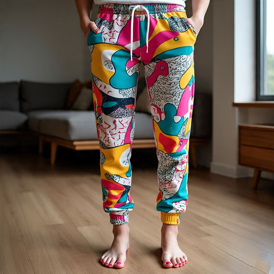 Sportswear Jogging Sublimation Trouser Pajama Women High Drawstring Waist Graphic Printed Sweatpants Ladies
