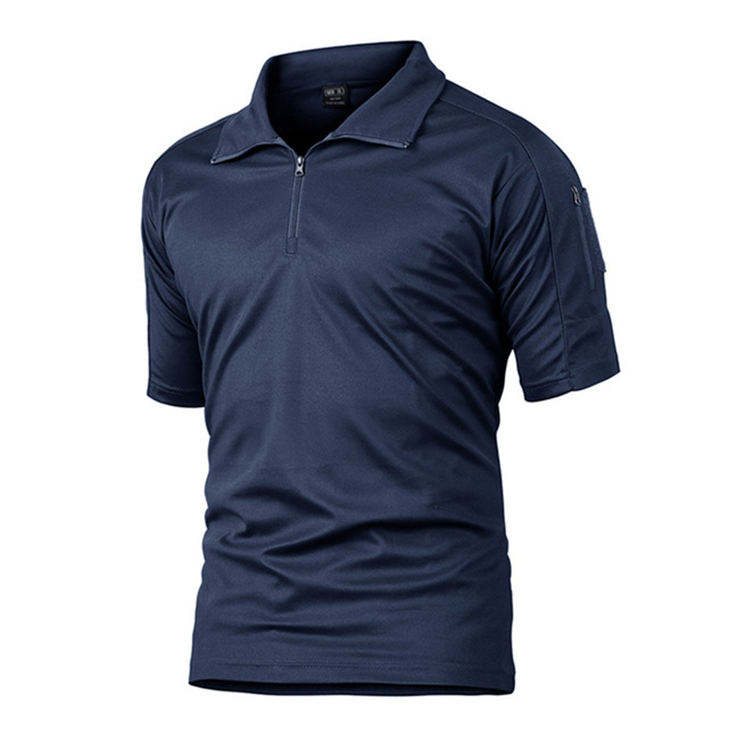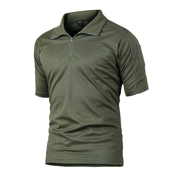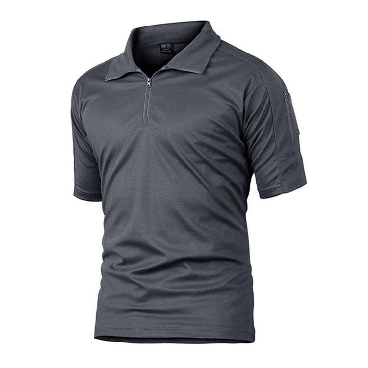 เสื้อโปโลมีซิปโพลีเอสเตอร์ยุทธวิธีสำหรับผู้ชายเสื้อล่าสัตว์สำหรับยุทธวิธีออกแบบโลโก้ได้ตามต้องการ