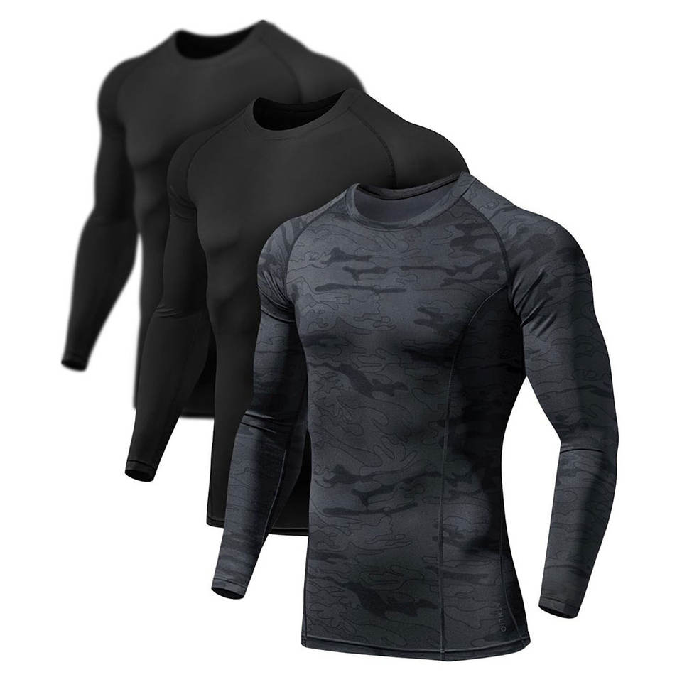 เสื้อกีฬารัดรูปสำหรับผู้ชายเสื้อรัชการ์ดแขนยาวแห้งเร็วสำหรับเข้ายิม