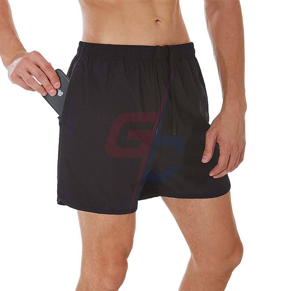 กางเกงขาสั้นผ้าไนลอนโพลีเอสเตอร์สำหรับผู้ชายสีดำสำหรับใส่ออกกำลังกายออกกำลังกายเล่นกีฬาวิ่งในยิม