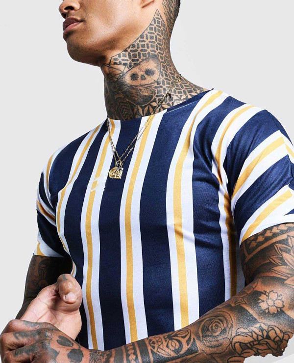 Men Stripe Line Printed Tee Shirts