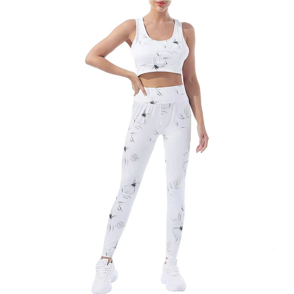ชุดกีฬาไร้ตะเข็บ เสื้อชั้นในและกางเกง 2 ชิ้น ชุดออกกำลังกายพิมพ์ลายดิจิทัลตามสั่ง ชุดโยคะเอวยางยืด