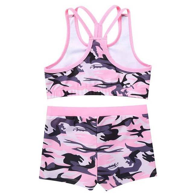 ชุดกีฬาสองชิ้นเครื่องแต่งกายCrop TopกับBootyกางเกงขาสั้นโยคะสวมใส่ฟิตเนสSublimated Camo Design Braและกางเกงขาสั้นชุดผู้หญิง