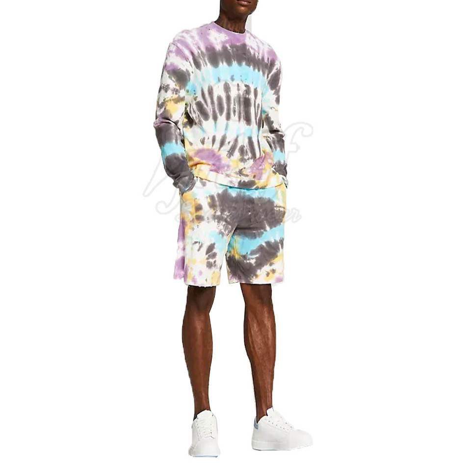 เซ็ตเสื้อสเวตเชิ้ตและกางเกงขาสั้นของผู้ชายดูสปอร์ตพอดีตัวและดีไซน์ทันสมัย