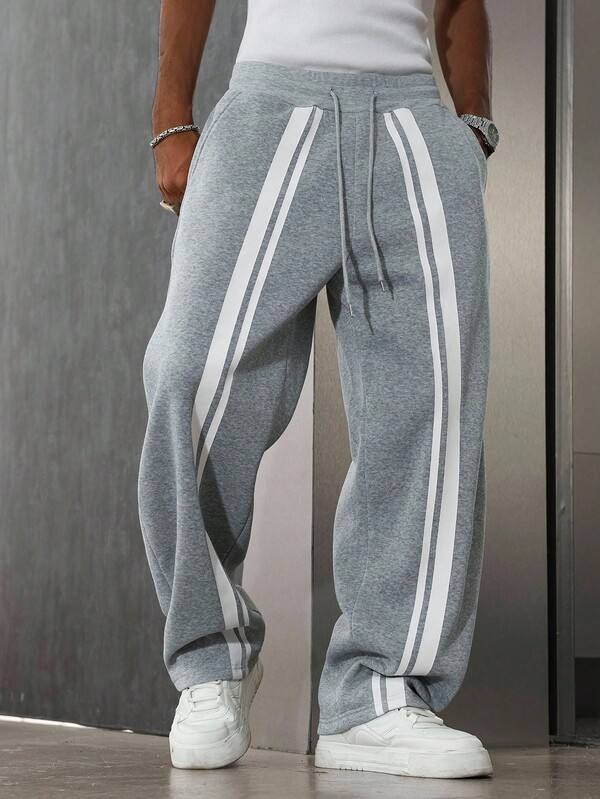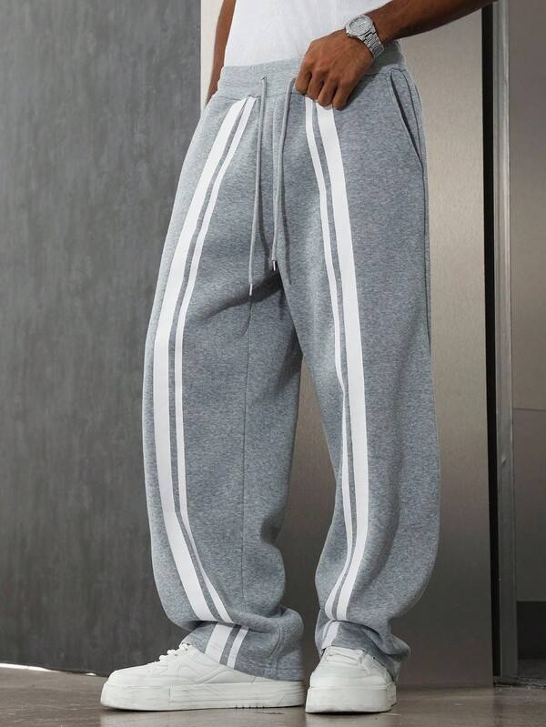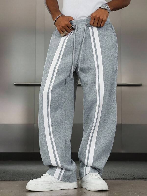 กางเกงกีฬาผู้ชายโอเวอร์ไซซ์โอเวอร์ไซซ์ใส่วิ่งตามสั่งสีขาวลายทางใส่สบายเอวยางยืดในเมืองฮิปฮอป