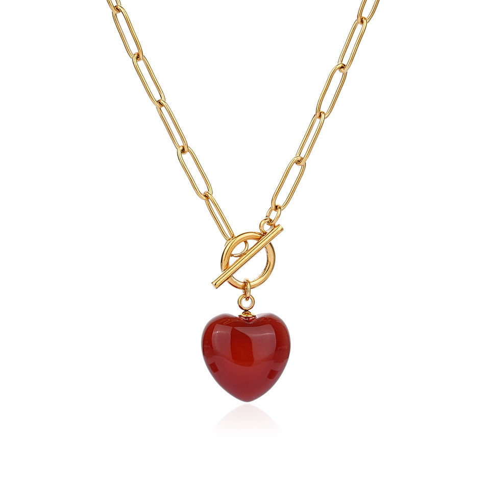 สร้อยคอจี้หินอาเกตรูปหัวใจ สินค้าพร้อมส่ง ดีไซน์ทันสมัย สำหรับทุกเพศ รับผลิตแบบ OEM/OEM โซ่สแตนเลสชุบทอง/เงิน