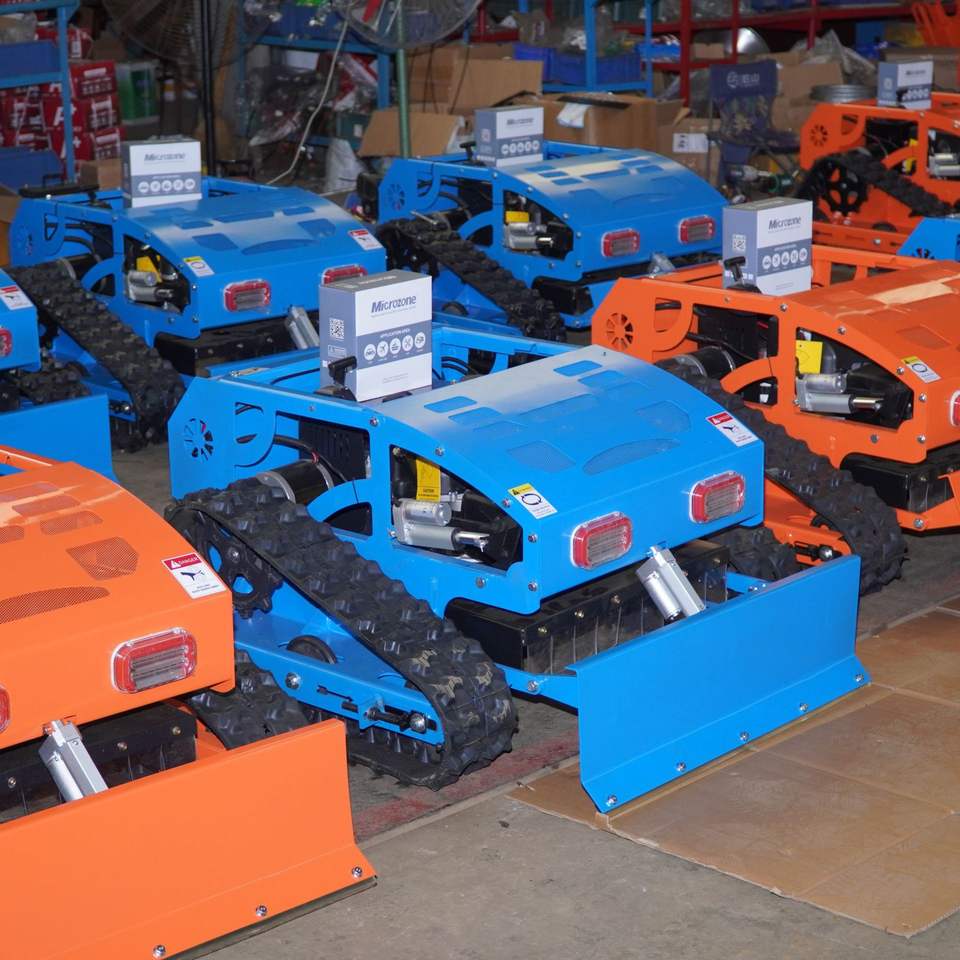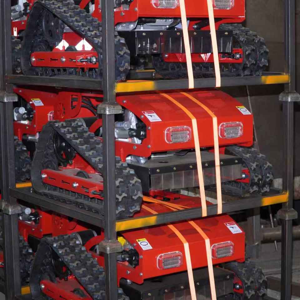 เครื่องตัดหญ้าแบบครอว์เลอร์ขนาดเล็กบังคับวิทยุสำหรับสนามเด็กเล่น สนามกอล์ฟ ป่าไม้ และสวนผลไม้ พร้อมอุปกรณ์ตัดหญ้าและกำจัดวัชพืช