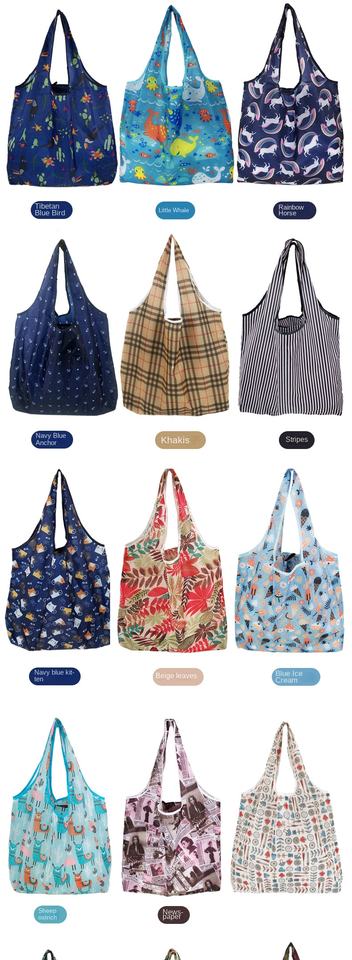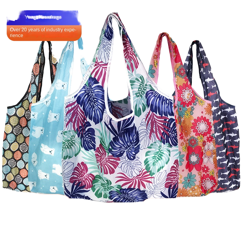 กระเป๋าผ้าโพลีเอสเตอร์แบบพกพาลายดอกไม้ขนาดใหญ่190กระเป๋าช้อปปิ้งสไตล์ลำลองพับได้เป็นมิตรต่อสิ่งแวดล้อม