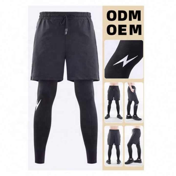 กางเกงกีฬารัดรูปสองชิ้นสำหรับผู้ชาย, กางเกงฟิตเนสกางเกงวิ่งยางยืดแห้งเร็วกางเกงฤดูร้อน