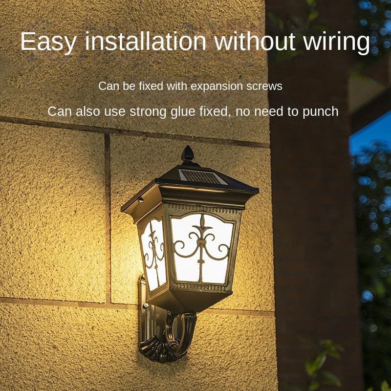 โคมไฟติดผนังกลางแจ้งสไตล์ยุโรป IP65ไฟ LED ขนาดใหญ่กันน้ำ E27ระเบียงลานสวนวัสดุอลูมิเนียมพลังงานแสงอาทิตย์