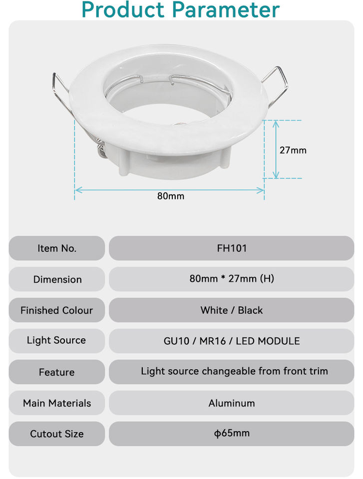 GU10สปอตไลท์สำหรับใส่ IP20สีขาวทรงกลมกรอบดาวน์ไลท์สำหรับใช้ในบ้าน