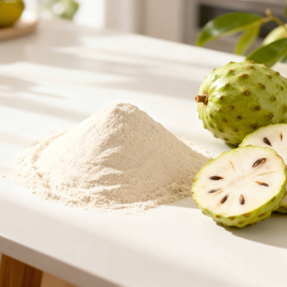 ผงผลไม้เกรวิโอลาแบบอบแห้งด้วยวิธีสเปรย์ดราย | ผงทุเรียนเทศธรรมชาติเกรดอาหาร | ผู้จัดจำหน่ายสินค้าจำนวนมาก บรรจุภัณฑ์ 5 กก.