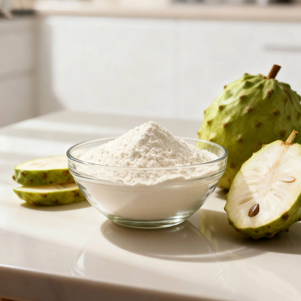 ผงผลไม้เกรวิโอลาแบบอบแห้งด้วยวิธีสเปรย์ดราย | ผงทุเรียนเทศธรรมชาติเกรดอาหาร | ผู้จัดจำหน่ายสินค้าจำนวนมาก บรรจุภัณฑ์ 25 กก.