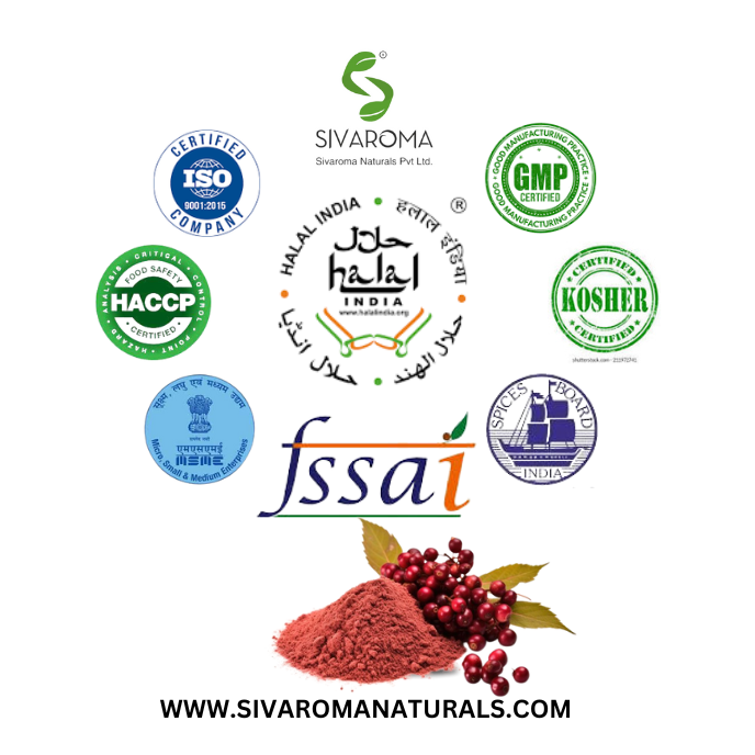 Certificate:ISO, GMP, MSME, HACCP, SPICES, HALAL, KOSHER, FSSAI