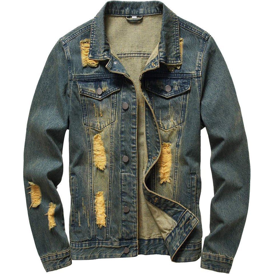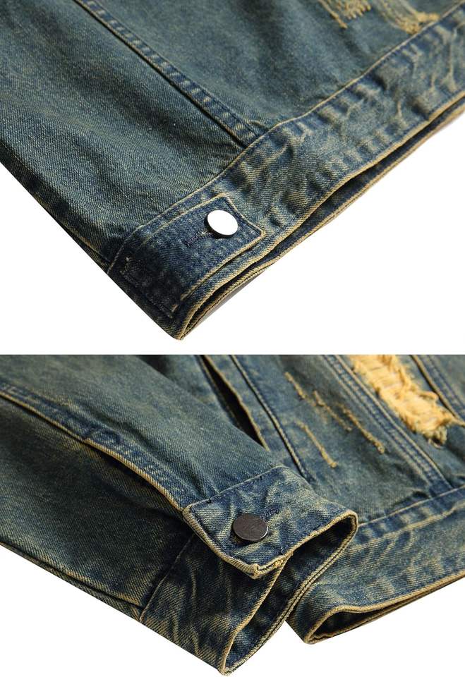 แจ็คเก็ตยีนส์สเปรย์วอชสไตล์ดิสเทรสสำหรับฤดูหนาว เสื้อโค้ทยาวระดับสะโพก ทนทาน สวมใส่สบาย เหมาะสำหรับงานทางการและสตรีทแฟชั่น