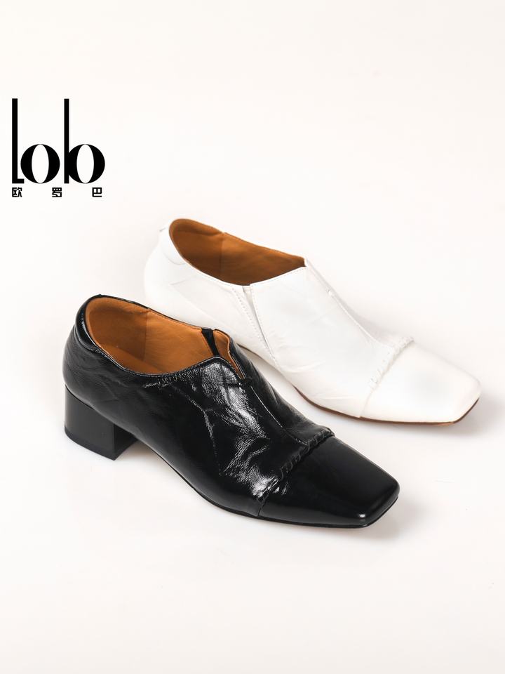 ฤดูใบไม้ผลิ 2026 หนังสปริงใส่สบาย สีพื้นเรียบเนียน พร้อมส้นเตี้ยทรงเหลี่ยม ดีไซน์แบบสวม ใส่สบายและกันลื่น