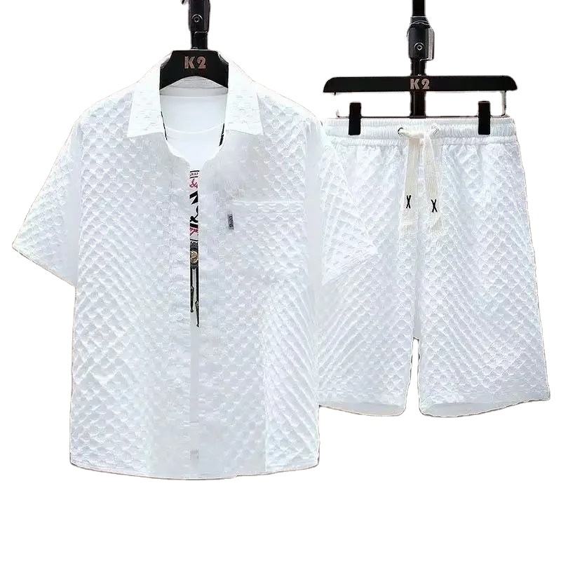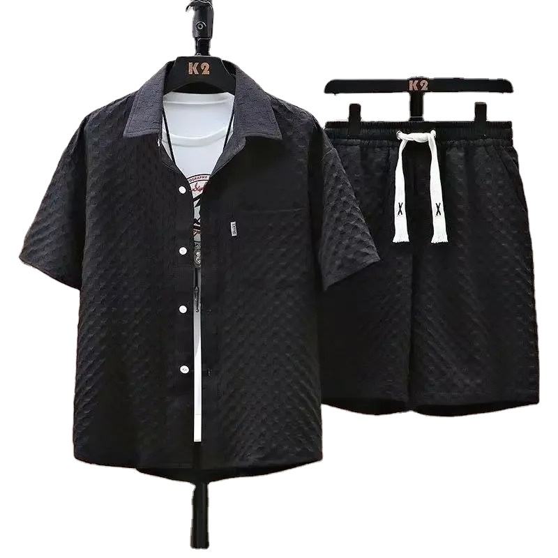 เสื้อโปโลผู้ชายใหม่ฤดูใบไม้ผลิและฤดูร้อนชุดสูทกางเกงแขนสั้นสีพื้นแฟชั่นเรียบง่ายน้ำหนักเบาสวมใส่ได้ทุกวันคุณภาพสูง