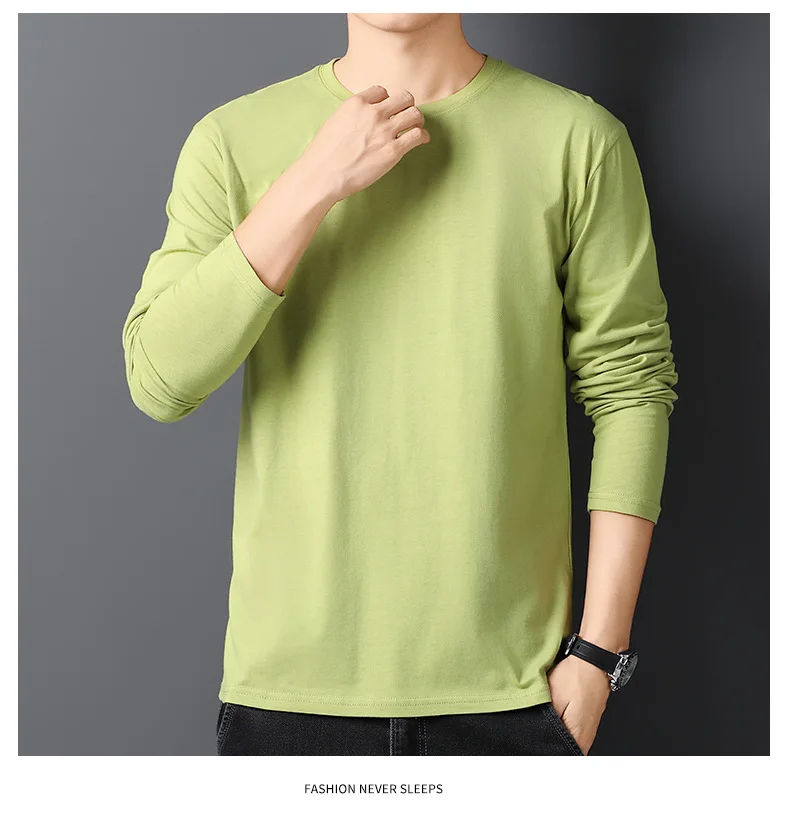 เสื้อยืดผู้ชาย แขนยาว คอกลม ผ้าฝ้าย 100% สไตล์เกาหลี ทรงเข้ารูป ใส่สบาย ระบายอากาศดี เหมาะสำหรับฤดูใบไม้ผลิและฤดูใบไม้ร่วง