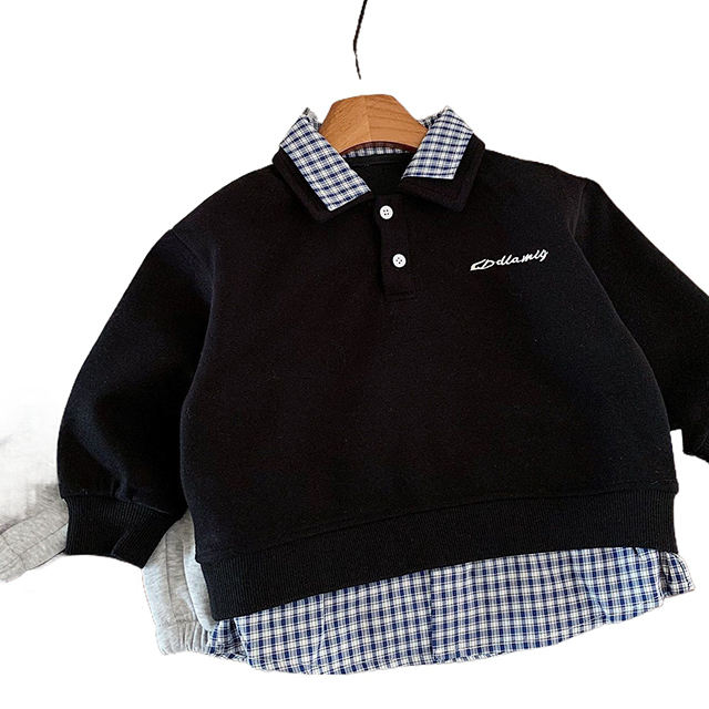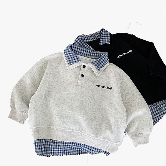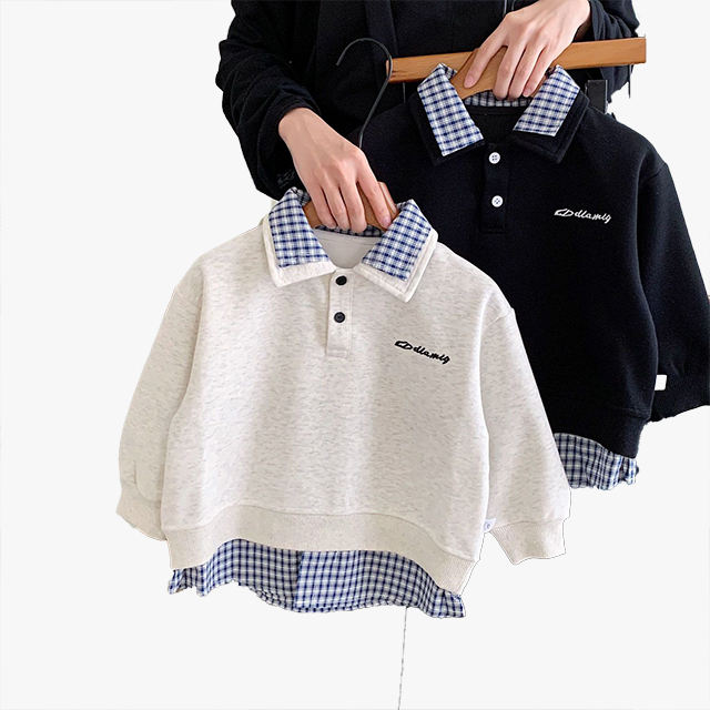เสื้อสเวตเชิ้ตเด็กผู้ชายผู้หญิงแฟชั่นฤดูใบไม้ผลิฤดูใบไม้ร่วง ชุดสองชิ้นลายสก็อต เสื้อโปโลปกเชิ้ต