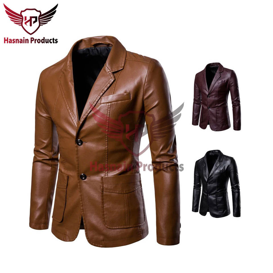 ฤดูใบไม้ผลิฤดูใบไม้ร่วงแฟชั่นผู้ชายLapelหนังชุดสูทCoat -ชายธุรกิจสบายๆPuเสื้อแจ็คเก็ต