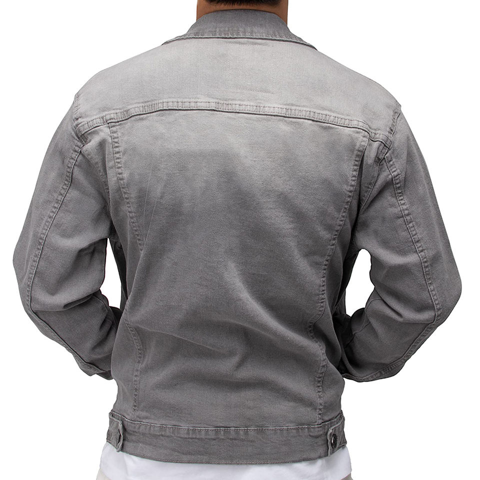 แจ็คเก็ตยีนส์ผู้ชายสำหรับฤดูใบไม้ผลิและฤดูใบไม้ร่วง แจ็คเก็ตยีนส์สีพื้นแบบลำลอง กระดุมแถวเดียว ทรงเข้ารูป ผ้าฝ้าย แจ็คเก็ตยีนส์สำหรับใส่เป็นเสื้อนอก