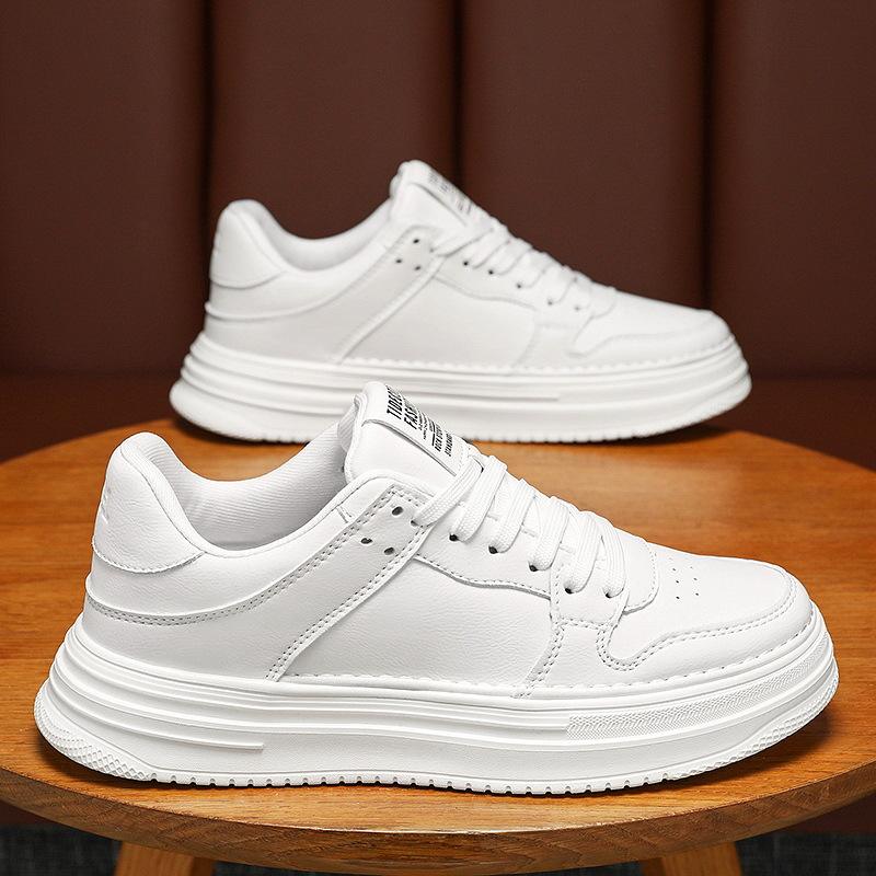 รองเท้าผ้าใบผู้ชายสไตล์เกาหลี ระบายอากาศได้ดี แบบผูกเชือก พื้นหนา สีขาว แฟชั่นลำลอง สไตล์สปอร์ต