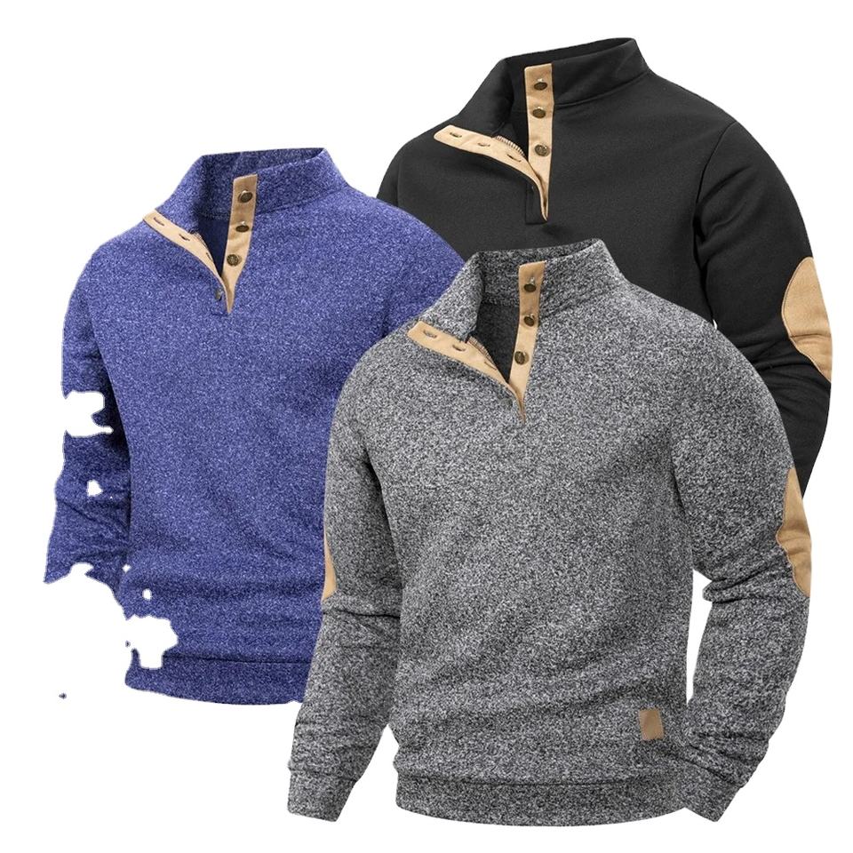 เสื้อโปโลผู้ชายสไตล์ลำลอง แขนยาว คอตั้ง ติดกระดุม สำหรับฤดูใบไม้ผลิและฤดูใบไม้ร่วง เหมาะสำหรับเล่นกีฬา