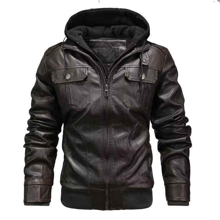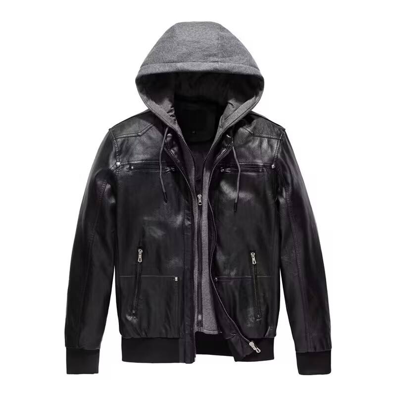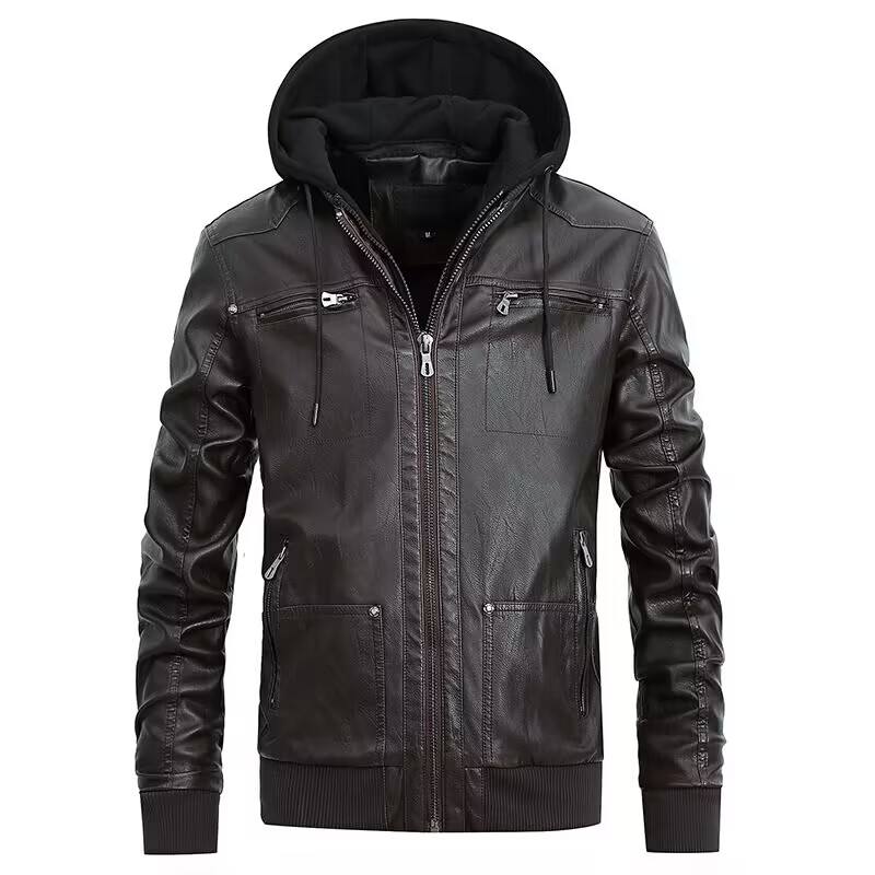 เสื้อแจ็คเก็ตหนังสำหรับขี่มอเตอร์ไซค์ผู้ชายทรงสลิมฟิตแบบมีซิป แจ็คเก็ตหนัง PU สำหรับผู้ชาย เสื้อแจ็คเก็ตหนังสำหรับขี่มอเตอร์ไซค์ผู้ชาย