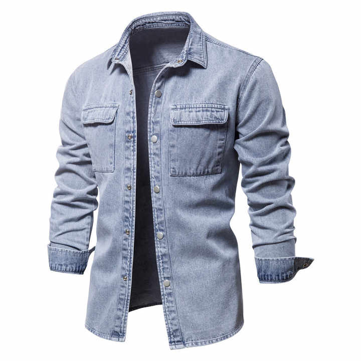 เสื้อโค้ทผ้ายีนส์ผู้ชายเสื้อโค้ทแฟชั่นยุโรปอเมริกันใหม่ฤดูใบไม้ผลิฤดูใบไม้ร่วง
