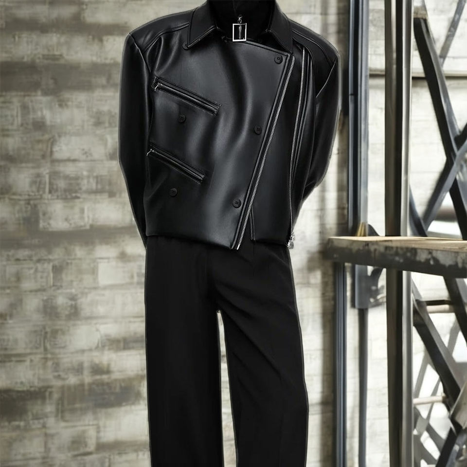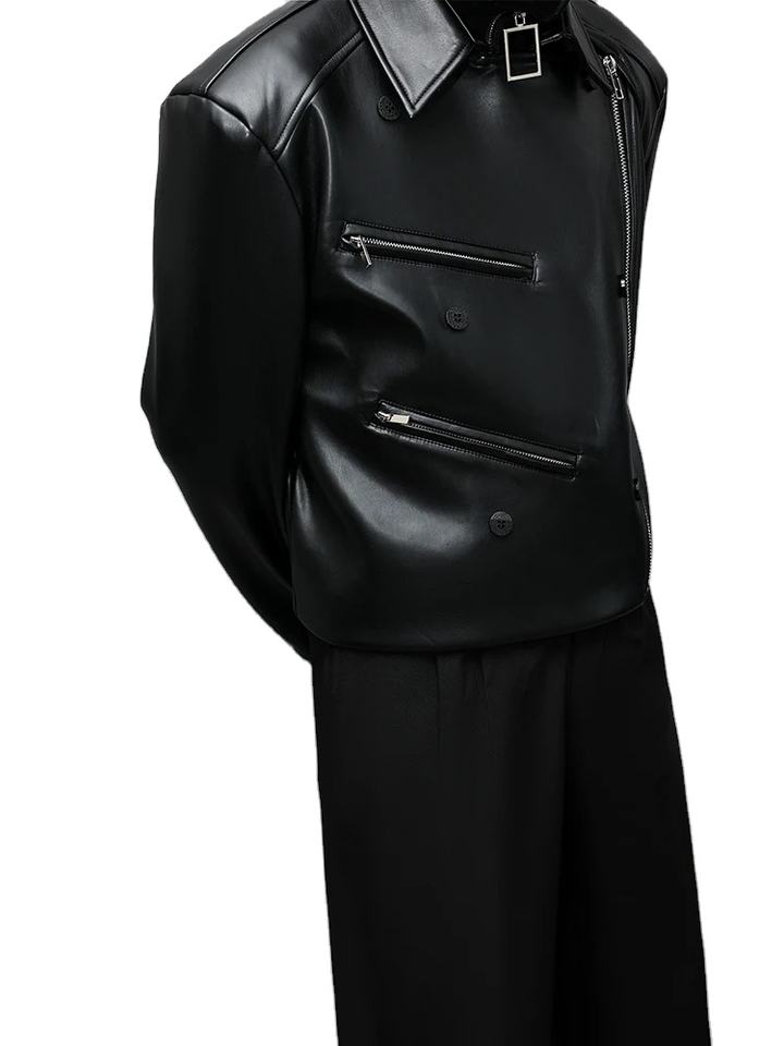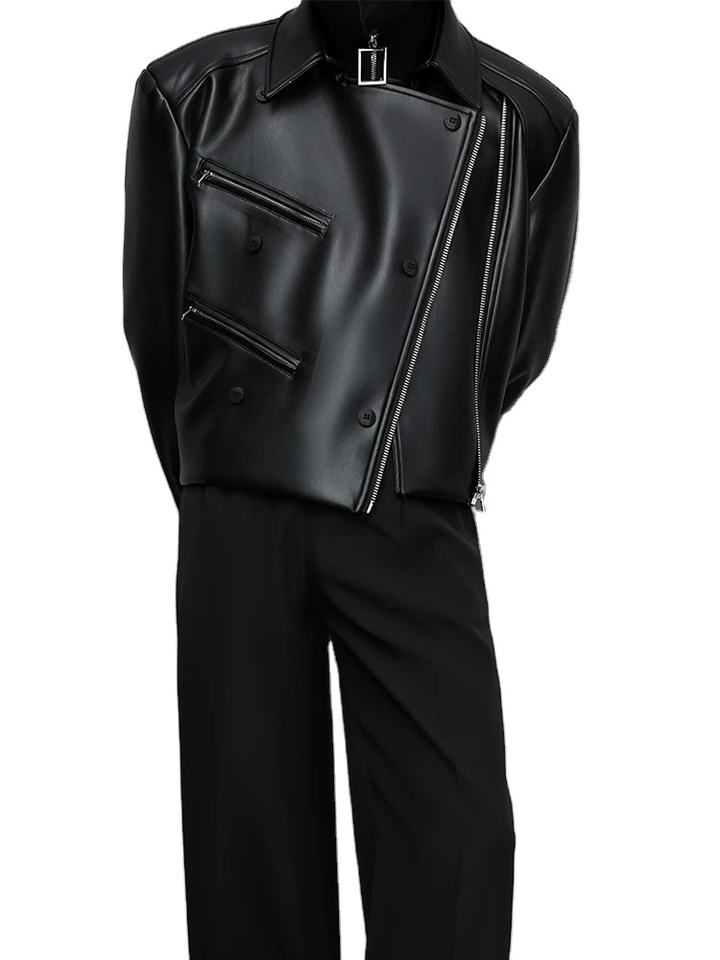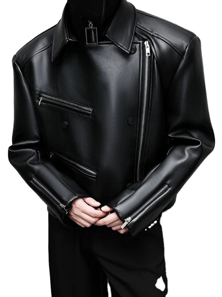 เสื้อแจ็คเก็ตหนัง PU สำหรับผู้ชายคอปกคอตั้งแขนยาวสำหรับฤดูใบไม้ผลิฤดูใบไม้ร่วง