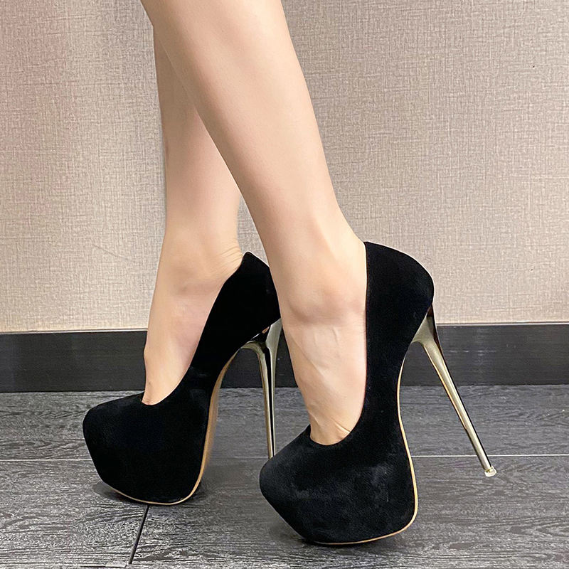 รองเท้าส้นสูงแบบแพลตฟอร์มโลหะทรงเซ็กซี่สำหรับฤดูใบไม้ผลิและฤดูใบไม้ร่วง สีแดง หัวกลม ส้นเข็ม เหมาะสำหรับงานแต่งงาน ไซส์ 45 ส้นสูงพิเศษ