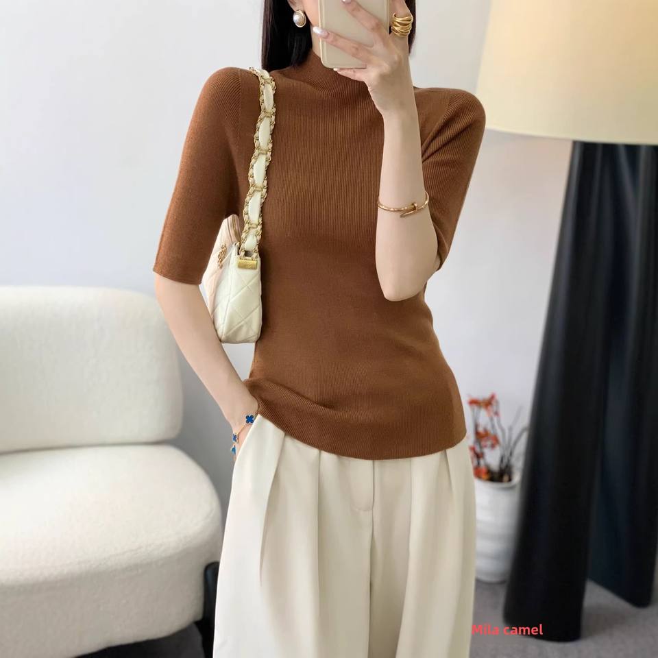 เสื้อสเวตเตอร์ขนสัตว์คอสูงครึ่งตัวสไตล์เกาหลีสำหรับผู้หญิง ฤดูใบไม้ผลิและฤดูใบไม้ร่วง แขนยาวปานกลาง ซักเครื่องได้ ผลิตจากขนสัตว์เนื้อดีไร้รอยต่อ