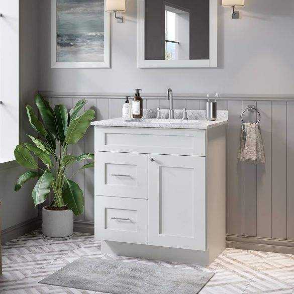 ตู้ห้องน้ำไม้แบบตั้งพื้นสไตล์โมเดิร์นมินิมอล Spring Creek พร้อมอ่างล้างหน้าแบบแขวนผนัง ทนทานต่อการกัดกร่อนและเป็นมิตรกับสิ่งแวดล้อม