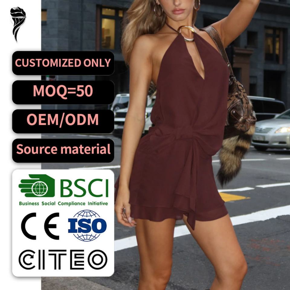 เดรสแฟชั่นผู้หญิงสไตล์เซ็กซี่สำหรับฤดูใบไม้ผลิ ผ้าชีฟองเนื้อนุ่ม ใส่สบาย ดีไซน์เปิดหลัง คอลึก ทรงมินิเดรส เหมาะสำหรับงานปาร์ตี้ฤดูร้อน