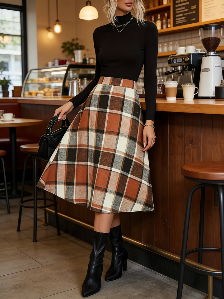 กระโปรงทรงเอพลัสไซส์ลายตารางสไตล์วินเทจสำหรับฤดูใบไม้ผลิ ฤดูใบไม้ร่วง ฤดูหนาว เอวธรรมชาติ ทรงบานพลิ้วสำหรับผู้หญิง
