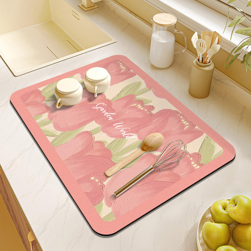 เสื่อครัวลายดอกไม้ฤดูใบไม้ผลิ รูปทรงสี่เหลี่ยมผืนผ้า กันลื่น ทำจากโพลีเอสเตอร์ สำหรับห้องรับประทานอาหาร สไตล์โมเดิร์น ป้องกันความร้อน