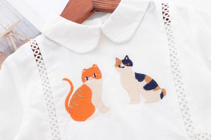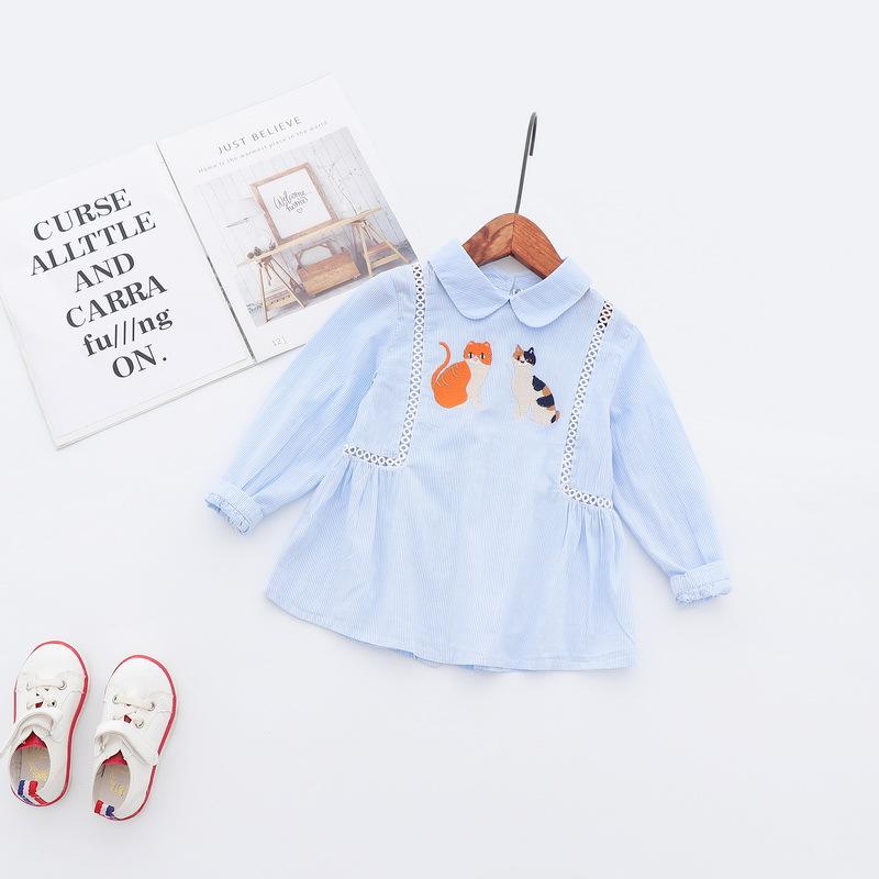 เสื้อเชิ้ตสไตล์เดรสลายการ์ตูนปักสำหรับเด็กผู้หญิง สไตล์เกาหลี ฤดูใบไม้ผลิ