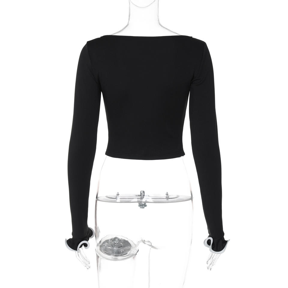 เสื้อเบลาส์เข้ารูปเข้ารูปสำหรับผู้หญิงเสื้อลูกไม้แขนยาวขอบหยักดีไซน์คอเสื้อเซ็กซี่สำหรับฤดูใบไม้ผลิ