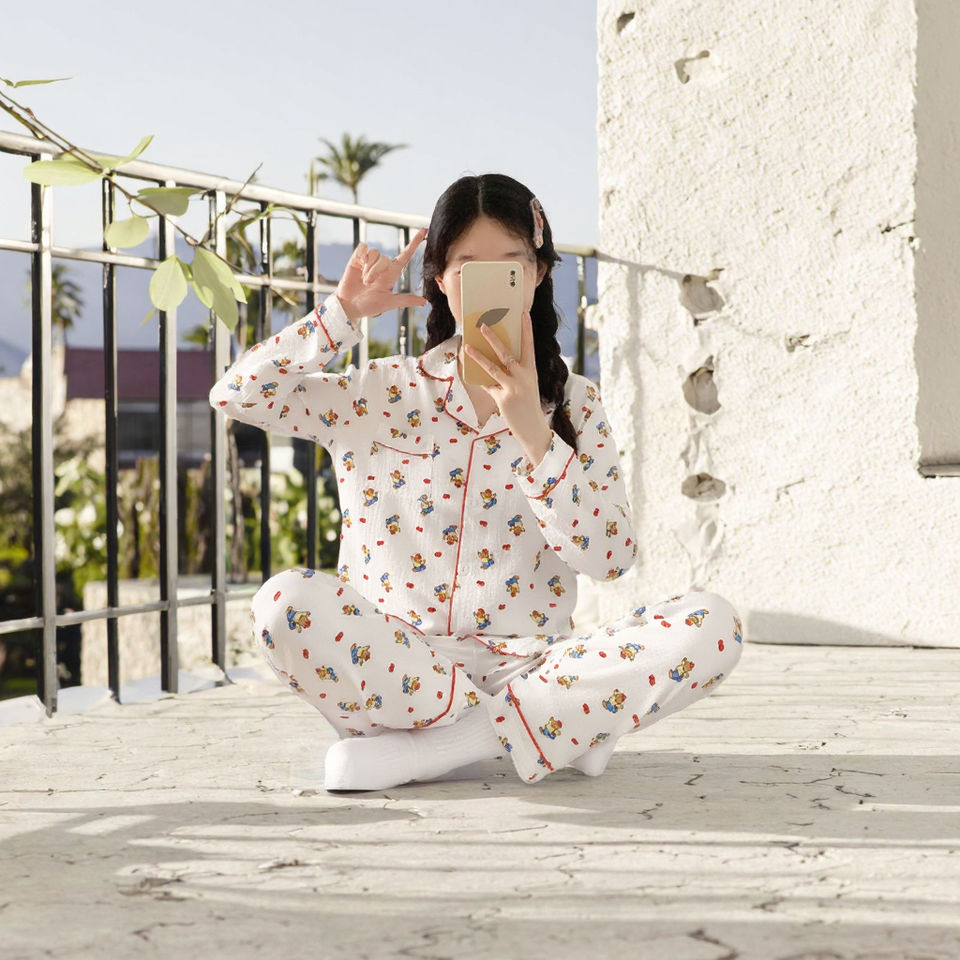ชุดนอนแขนยาวลายการ์ตูนสำหรับผู้หญิง 2 ชิ้น ชุดนอนใส่บ้าน ขายส่งราคาถูก