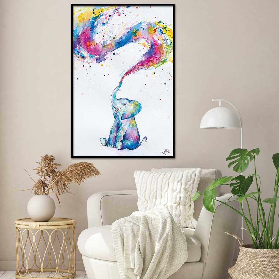 โปสเตอร์ผ้าใบลายช้างน้อยของสปริง มาร์ค อัลแลนเต้ พิมพ์ดิจิทัลสำหรับตกแต่งบ้าน ภาพวาดติดผนัง สนับสนุนการอนุรักษ์สัตว์