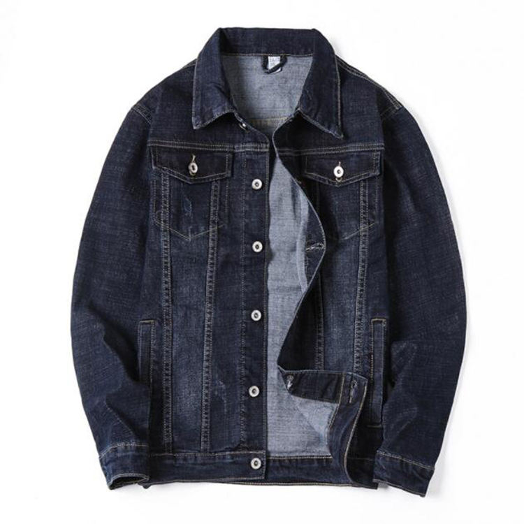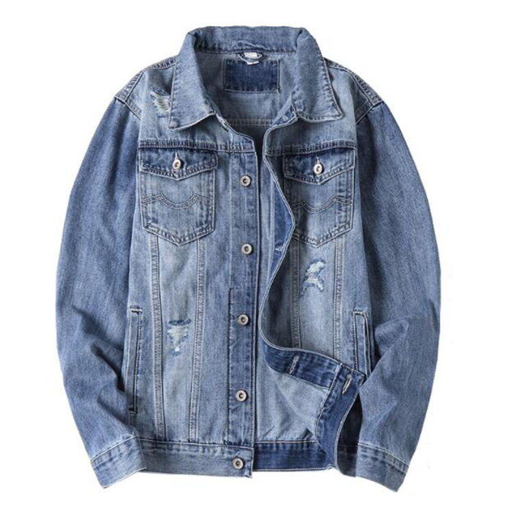 แจ็คเก็ตยีนส์แขนยาวลำลองสำหรับผู้ชายเสื้อแจ็คเก็ตยีนส์มีกระเป๋าหลายแบบแฟชั่นแจ็คเก็ตสีฟ้าคลาสสิก
