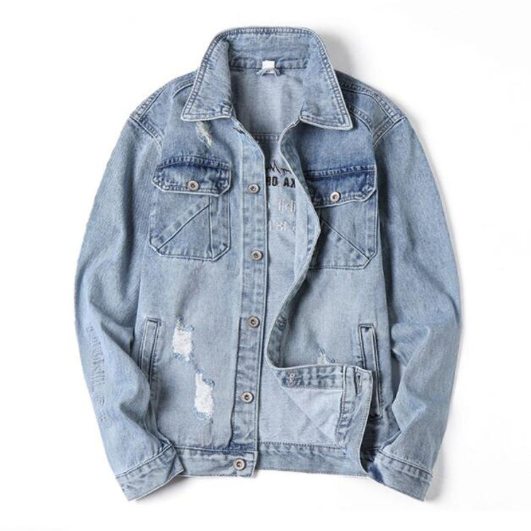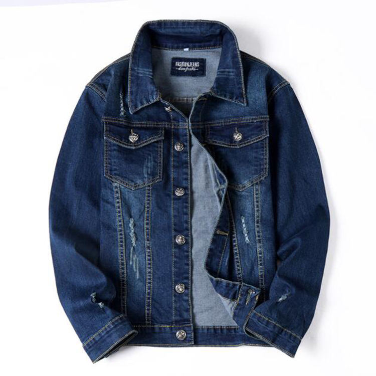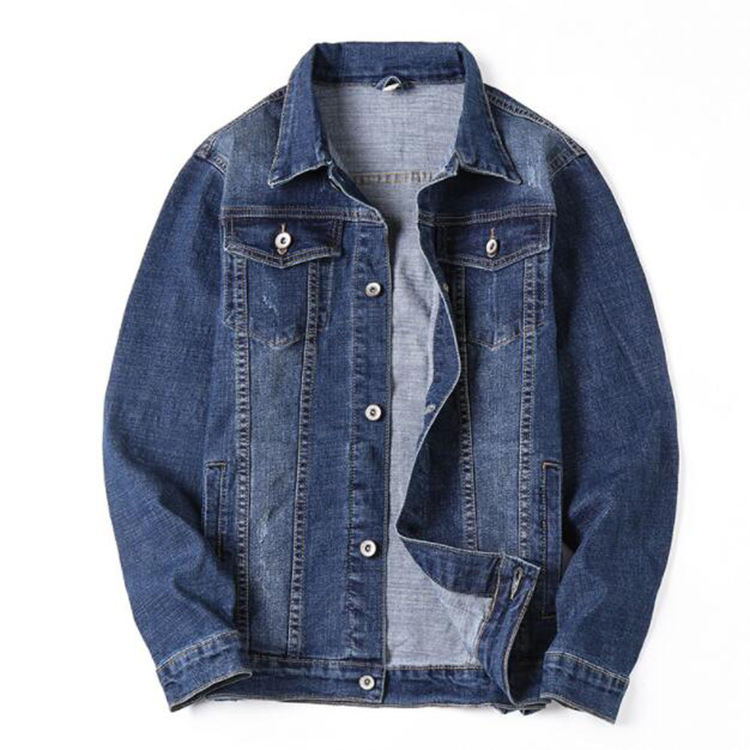 แจ็คเก็ตยีนส์แขนยาวลำลองสำหรับผู้ชายเสื้อแจ็คเก็ตยีนส์มีกระเป๋าหลายกระเป๋าแฟชั่นสีฟ้าคลาสสิก