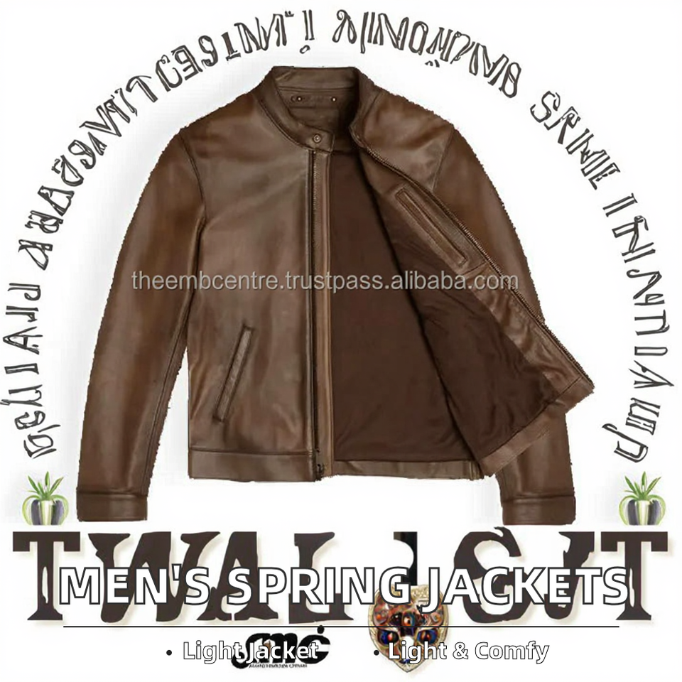 เสื้อแจ็คเก็ตบอมเบอร์ผู้ชายสไตล์ลำลองสำหรับฤดูใบไม้ผลิ ผ้าแคนวาสเคลือบกันน้ำ คอตั้ง ซิป น้ำหนักเบา ดีไซน์สปอร์ต รับตัดเย็บตามแบบ