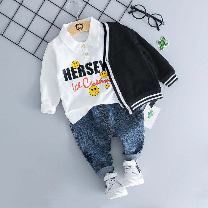 ชุดเสื้อผ้าเด็กผู้ชายดีไซน์ใหม่รับฤดูใบไม้ผลิ 3 ชิ้น / ชุดเด็ก / ชุดเสื้อผ้าเด็กผู้ชาย