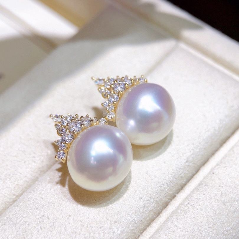 ต่างหูมุกออสเตรเลียสีขาวธรรมชาติ คุณภาพดี ขนาด 11-10 มม. สำหรับฤดูใบไม้ผลิ/ฤดูร้อน โปร่งใสมาก แสงเย็น คุณภาพเทียบเท่า